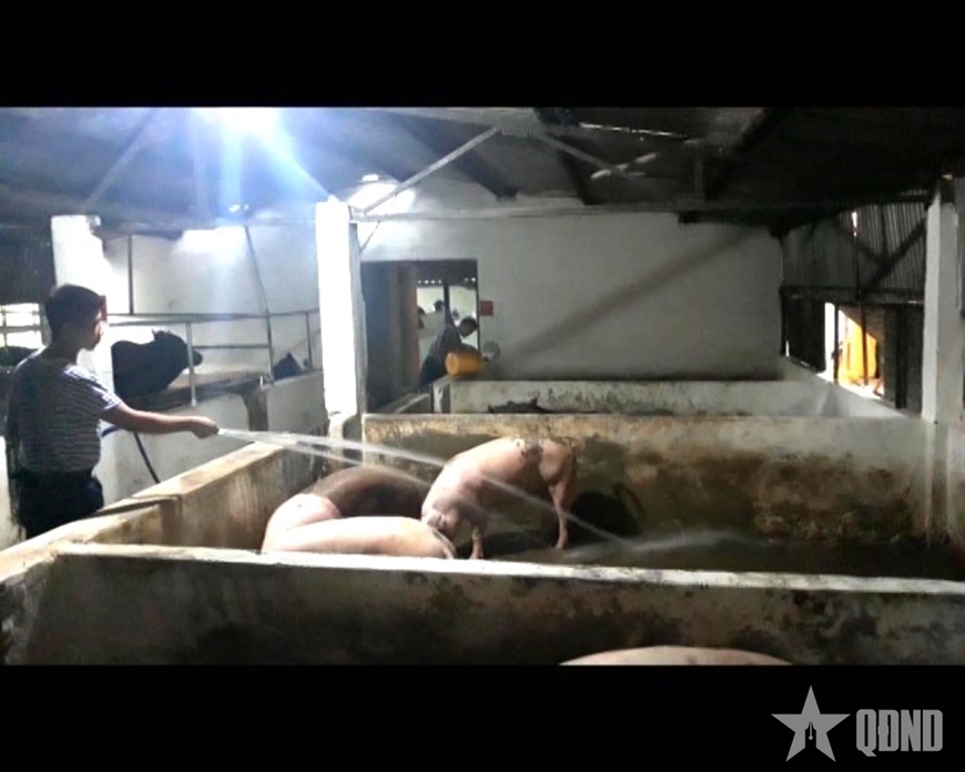 Chiến sĩ Lữ đoàn 680 chăm sóc đàn lợn.
