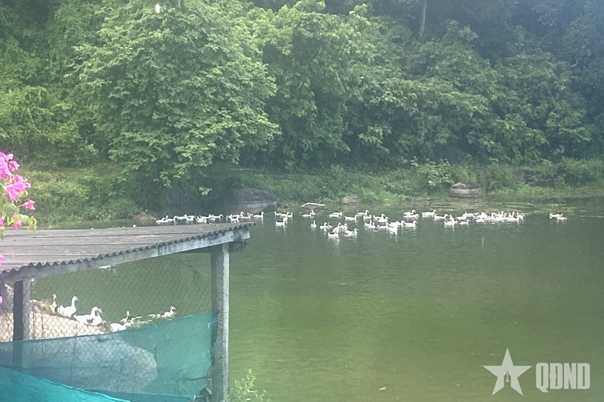 Duy trì ao cá kết hợp nuôi gia cầm, góp phần cải thiện nâng cao đời sống bộ đội.