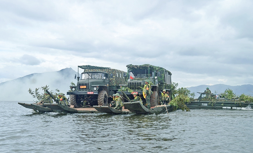 | Lữ đoàn Công binh 7 tổ chức huấn luyện vượt sông. |