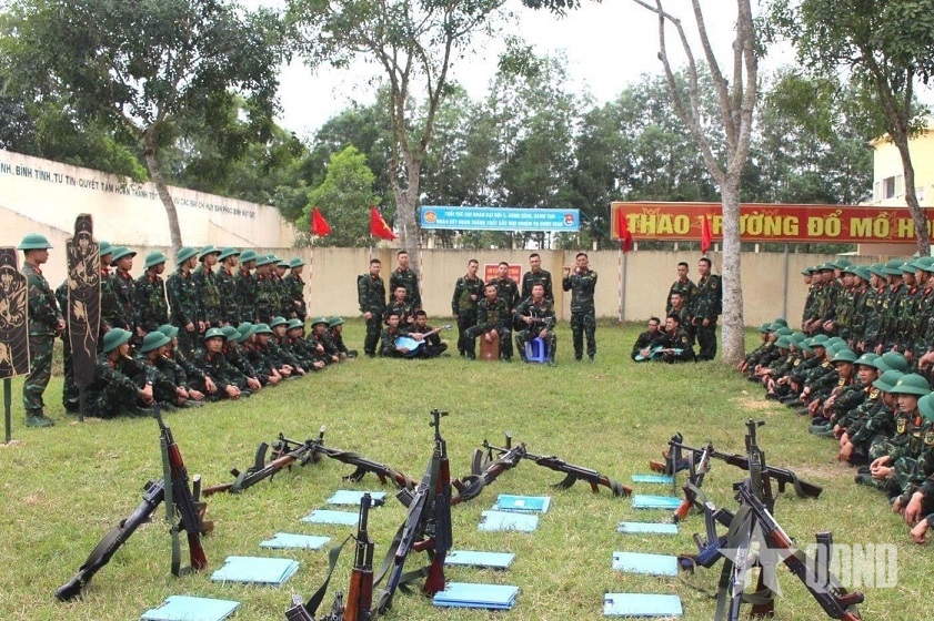 | Cán bộ, chiến sĩ Tiểu đoàn 2 thi đua huấn luyện giỏi. |