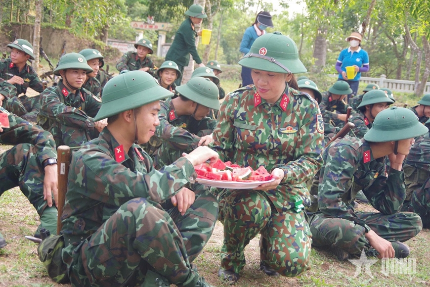 Còn trên thao trường huấn luyện của Đại đội 2, Tiểu đoàn 1, rộn ràng băng cờ, khẩu hiệu cổ động công tác huấn luyện. Giờ giải lao, cán bộ, chiến sĩ được đón nhận những cốc nước ấm, những đĩa trái cây từ các hội viên Hội Phụ nữ Lữ đoàn mang tới. Tiếp theo là những tiết mục văn nghệ do cán bộ, hội viên phụ nữ và cán bộ, chiến sĩ đơn vị thể hiện đã góp phần xua tan sự mệt mỏi sau giờ huấn luyện.