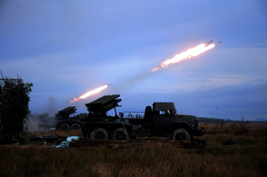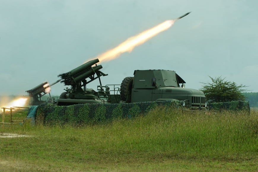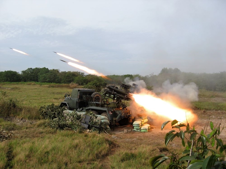Pháo BM14 Lữ đoàn Pháo binh 75 xuất kích tiêu diệt mục tiêu trong diễn tập có bắn đạn thật.