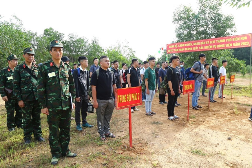 Lực lượng tham gia diễn tập dự bị động viên của Lữ đoàn Pháo binh 75 năm 2023. |