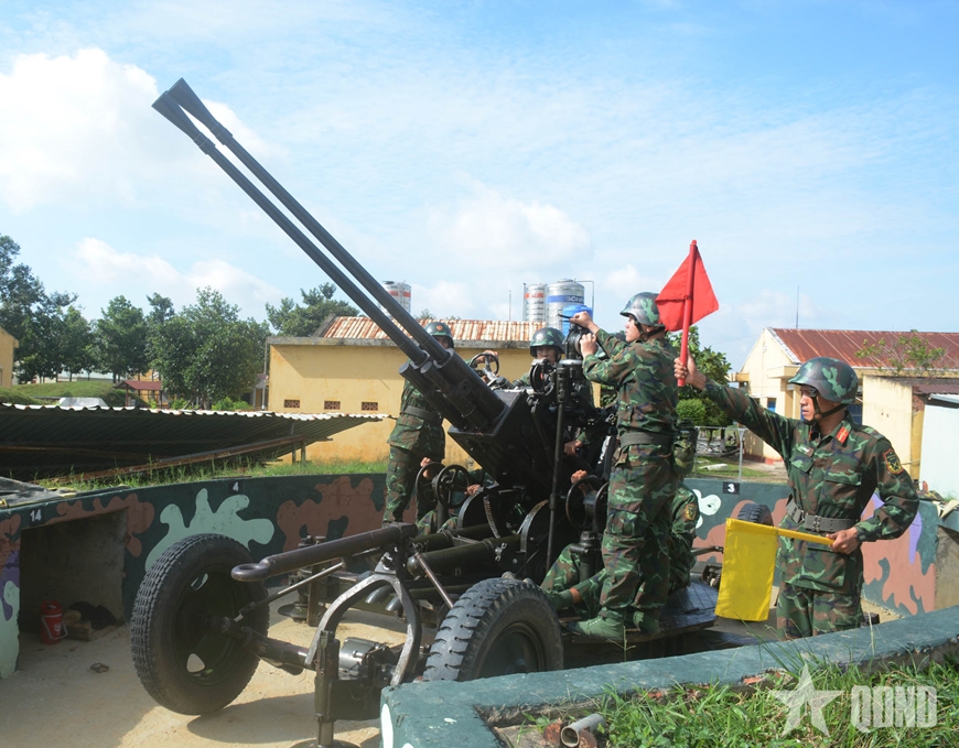 | Khẩu đội pháo luyện tập tình huống chiến đấu bảo vệ bầu trời. |