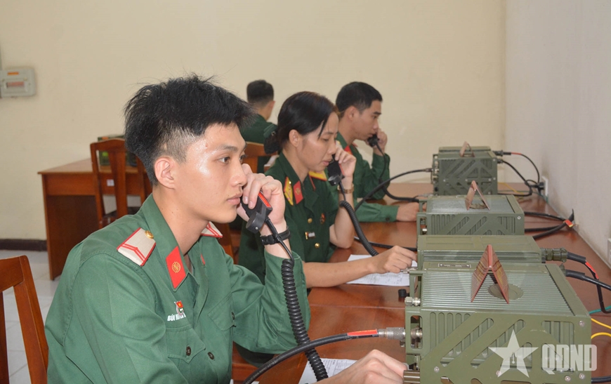 | Cán bộ, chiến sĩ, nhân viên ứng dụng công nghệ trong trực thông tin sẵn sàng chiến đấu. |