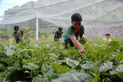 | Khắc phục khó khăn, bộ đội đảo Mê (Bộ CHQS tỉnh Thanh Hóa) đã bảo đảm đủ rau xanh phục vụ bữa ăn hằng ngày. Ảnh: Đức Dục |