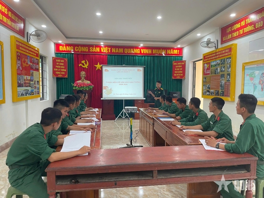 | Trung đoàn 841, Bộ CHQS tỉnh Hà Tĩnh coi trọng đổi mới, nội dung, hình thức tuyên truyền nâng cao ý thức văn hóa giao thông cho chiến sĩ thông qua các tài liệu và trực quan. |