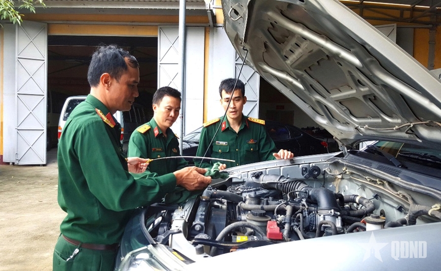 | Cơ quan xe máy thuộc Phòng Hậu cần - Kỹ thuật tăng cường kiểm tra tình trạng kỹ thuật phương tiện và trình độ nhận thức của lái xe. |