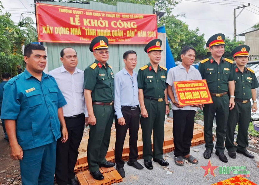 Ban CHQS TP Thuận An phối hợp khởi công xây tặng nhà tình nghĩa. |
