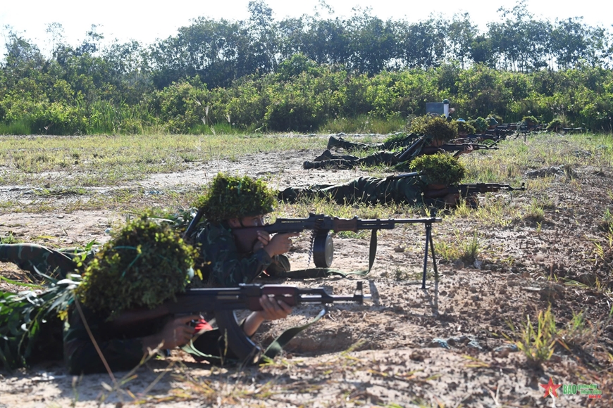 Minh chứng rõ nét cho tinh thần huấn luyện thao trường đổ mồ hôi là sau khi hoàn thành chặng đường hành quân, đơn vị đã chuyển vào thực hành nội dung “Đại đội tiến công địch”. Vận dụng tốt các nguyên tắc chiến thuật, đơn vị đã làm tốt công tác chuẩn bị chiến đấu, tổ chức ngụy trang bí mật. Các hướng mũi được triển khai tiếp cận mục tiêu, thực hành nổ súng tiêu diệt các mục tiêu giả định theo tín hiệu hiệp đồng.