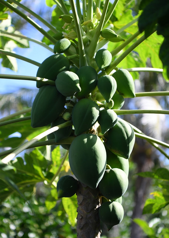 Các loại cây ăn quả như dừa, xoài, đu đủ; các cây bóng mát như bàng quả vuông, mù u, phong ba, bão táp, phi lao và rau xanh cùng cây thuốc quý như cây nhàu, đang khoác cho đảo sắc xanh dịu mát.