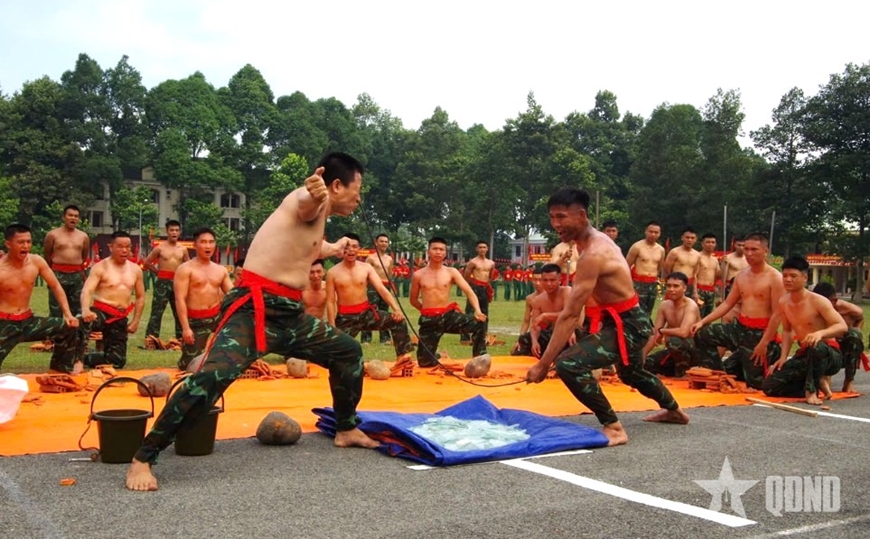 Cán bộ, chiến sĩ Lữ đoàn Đặc công bộ 429 trình diễn khí công. Ảnh: NGUYÊN THẢO