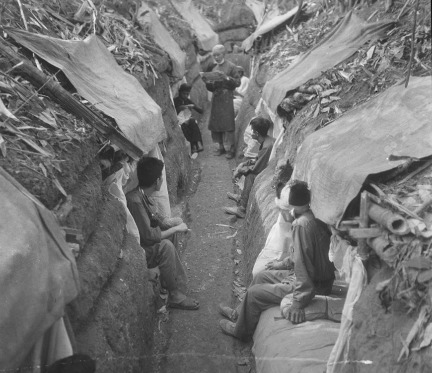 Đọc báo và thư nhà bên chiến hào ở Điện Biên Phủ. Ảnh: TRIỆU ĐẠI