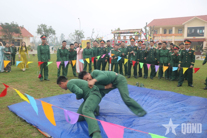 | Cán bộ, chiến sĩ Tiểu đoàn 3, Lữ đoàn Phòng không 283 (Quân khu 4) tham gia các trò chơi dân gian. |