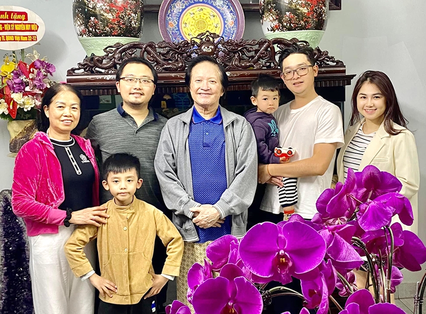 | Thượng tướng Nguyễn Huy Hiệu và gia đình. Ảnh: HÀ VIỆT |