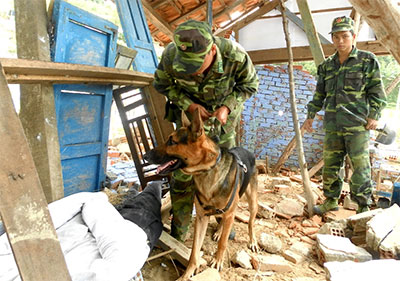 Chó nghiệp vụ D19 huấn luyện cứu nạn.