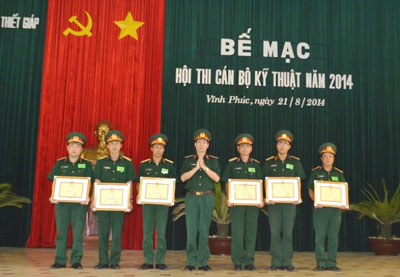 | Thiếu tướng Nguyễn Thanh Hải, Chính ủy Binh chủng Tăng-Thiết giáp trao bằng khen cho cá nhân đạt thành tích xuất sắc trong hội thi |