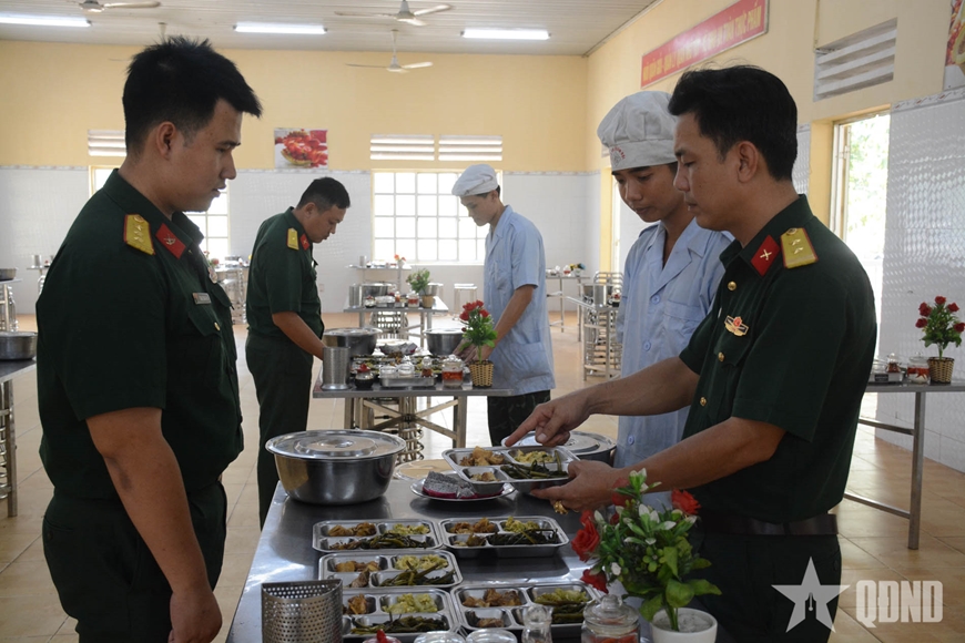 | Kiểm tra bữa ăn chiến sĩ mới tại Trung đoàn Gia Định, Bộ tư lệnh TP Hồ Chí Minh. |
