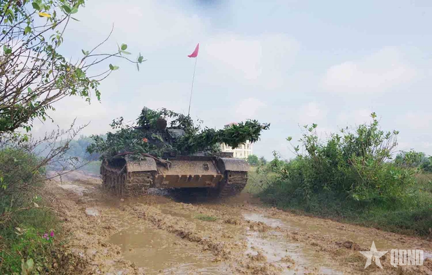 | Xe tăng của Lữ đoàn Tăng thiết giáp 26 (Quân khu 7) huấn luyện vượt địa hình phức tạp. Ảnh: DUY HOÀN |