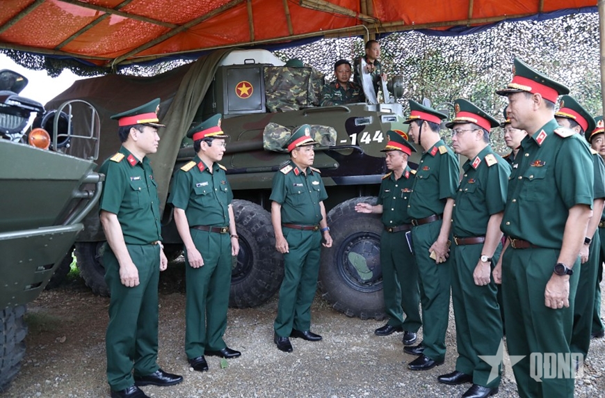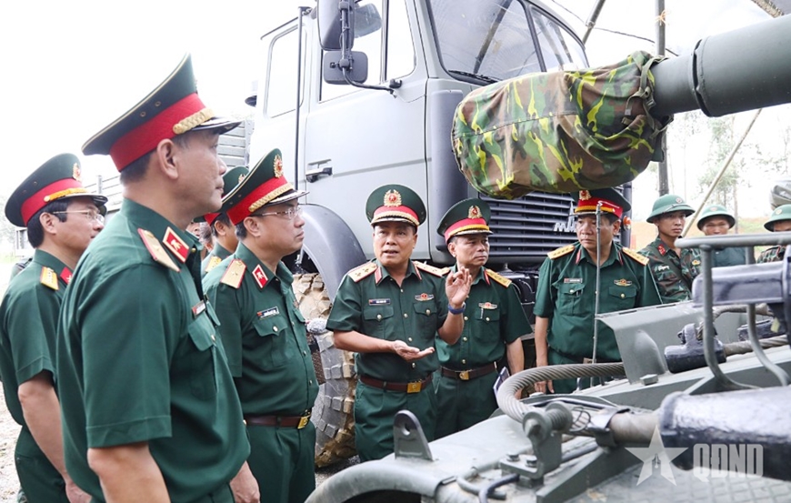 Lãnh đạo Tổng cục Hậu cần - Kỹ thuật kiểm tra công tác bảo đảm kỹ thuật khối xe pháo quân sự thực hiện nhiệm vụ A80 (tháng 8-2025). Ảnh: QUỲNH HƯƠNG