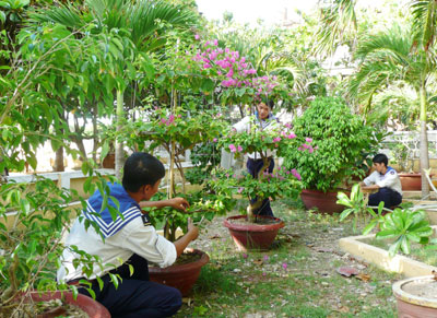 Bộ đội đảo Trường Sa Lớn làm đẹp khuôn viên, cây cảnh trong đơn vị.