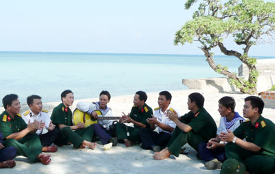 Nơi chúng tôi đến đầu tiên là đảo Song Tử Tây. Vừa bước chân lên đảo, chúng tôi đã được nhiều cán bộ, chiến sĩ của đảo đến chào hỏi, bắt tay thân mật rồi tận tình dẫn đường, chỉ lối những nơi cần đến.