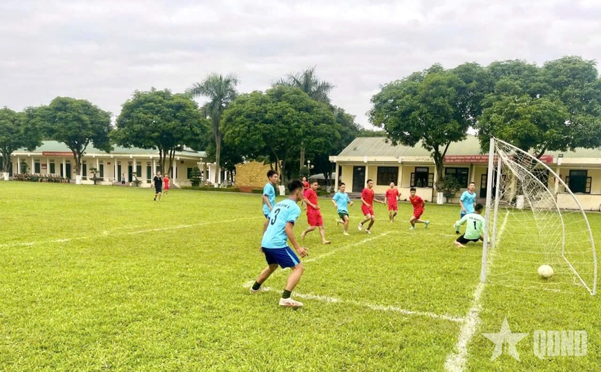 | Cán bộ, chiến sĩ Lữ đoàn Công binh 543, Quân khu 2 chơi bóng trong ngày nghỉ. Ảnh: VĂN THAO |