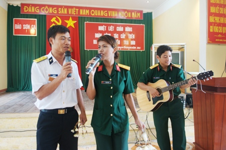 | Diễn viên Đoàn văn công Quân khu 5 giao lưu văn nghệ với cán bộ, chiễn sĩ đảo Sơn Ca. |