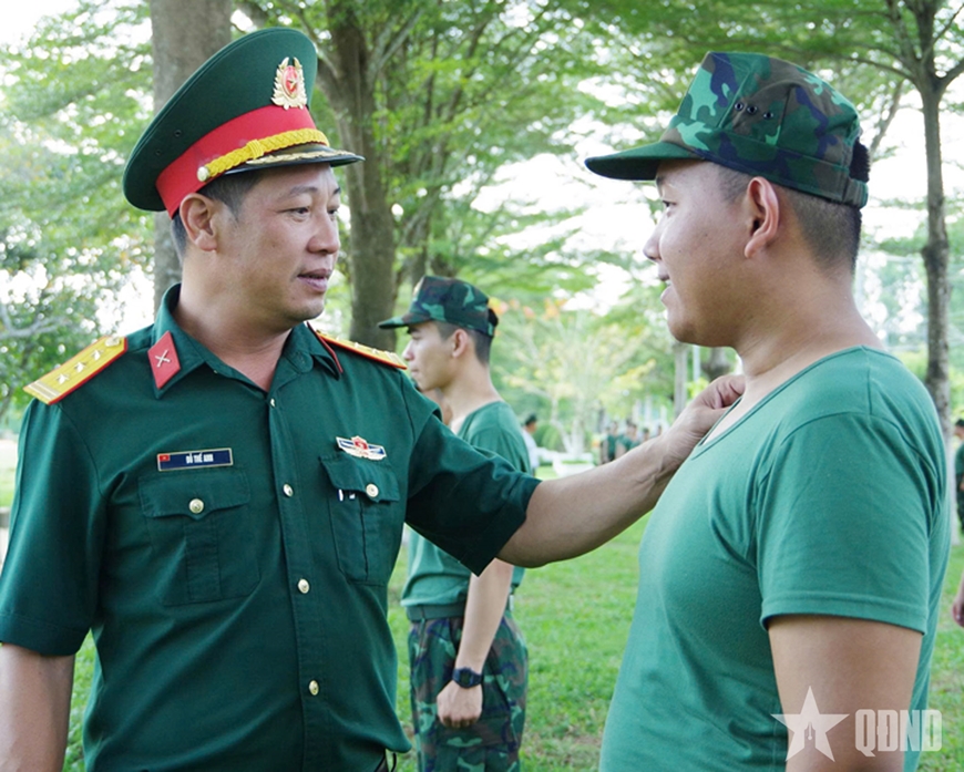 | Thượng tá Đỗ Thế Anh thăm hỏi đời sống, tâm tư chiến sĩ mới. |