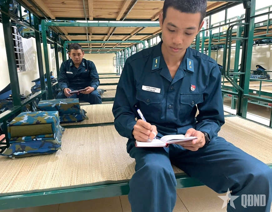 Chiến sĩ Nguyễn Anh Khoa, Tiểu đội 2, Trung đội 3, Đại đội 1, Tiểu đoàn Huấn luyện chiến sĩ mới 1, tâm sự: “Trước đây, vào ngày nghỉ tôi thường dùng điện thoại để lướt mạng xã hội. Nhưng từ khi vào đơn vị, tôi dần chuyển sang viết nhật ký. Việc này giúp tôi sử dụng thời gian hợp lý hơn, suy nghĩ chín chắn hơn và thấy đây là một thói quen lành mạnh, có ý nghĩa đối với bản thân”.