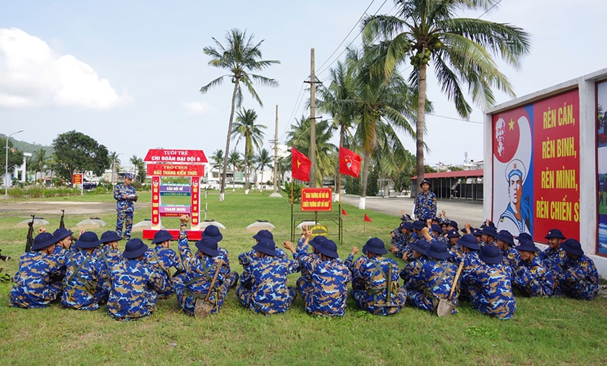 | Trò chơi “Nấc thang kiến thức” ở Đại đội 6 (Tiểu đoàn 886). |
