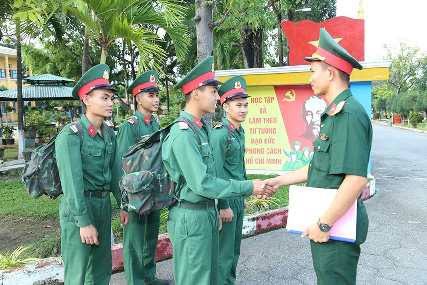 | Cán bộ Tiểu đoàn Trinh sát 32 (Bộ Tham mưu Quân khu 5) trò chuyện, động viên chiến sĩ trước khi về phép. |