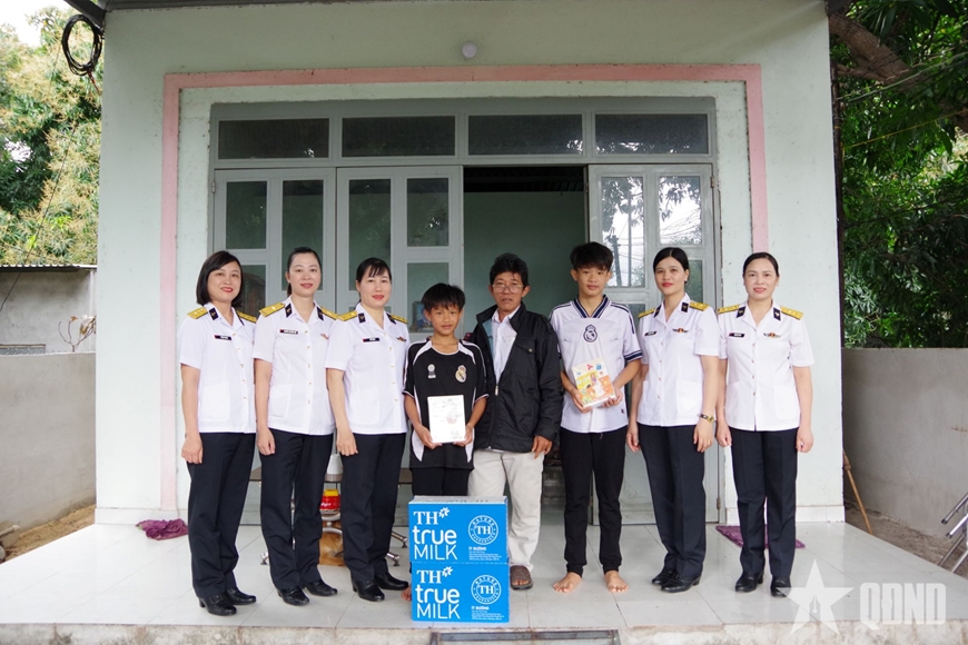 Hội Phụ nữ thăm, tặng quà 2 con ngư dân do Lữ đoàn đỡ đầu. |