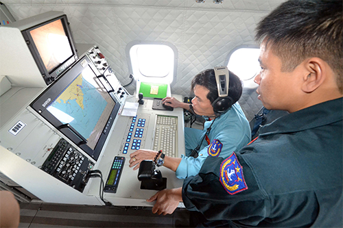 Tổ tuần thám trên máy bay CASA-212 của Lữ đoàn 918 sử dụng phương tiện hiện đại rà soát mục tiêu.