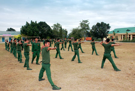QĐND Online - Tạm biệt quê hương và gia đình, các thanh niên của thành phố Nha Trang, thị xã Ninh Hòa và huyện Khánh Vĩnh (tỉnh Khánh Hòa) đã nhập ngũ về Trung đoàn 974 (Bộ CHQS tỉnh Khánh Hòa). Cảm giác lạ lẫm, nhớ nhà, nhớ người thân của các chiến sĩ mới đã nhanh chóng qua đi nhờ sự gần gũi, sâu sát của đội ngũ cán bộ đơn vị. Trong những ngày đầu quân ngũ, các chàng “tân binh” được hướng dẫn các nội dung ngoại khóa, làm quen với 11 chế độ trong ngày, 3 chế độ trong tuần để chuẩn bị bước vào khóa huấn luyện chính thức.