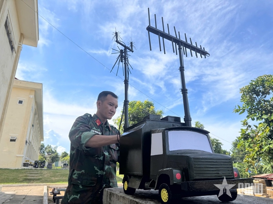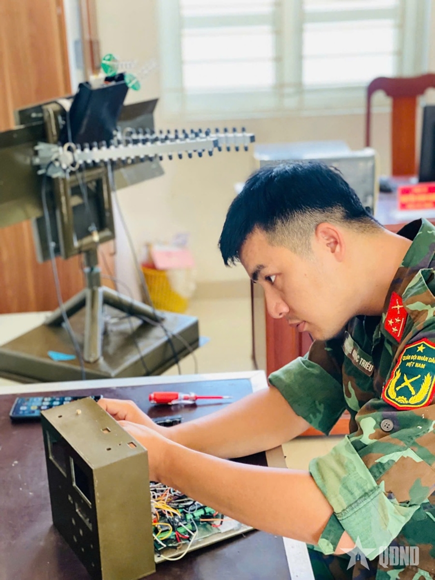| Thượng úy QNCN Trương Quốc Triều nghiên cứu, cải tiến “Thiết bị hỗ trợ trinh sát mục tiêu dải tần 2,4 Ghz”. |