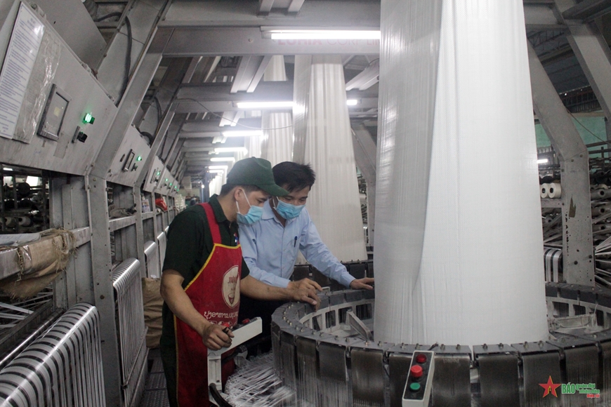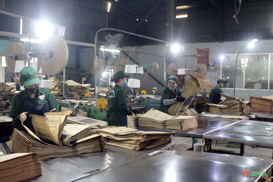 | Tổ hoàn thiện sản phẩm công nhân Công ty Cổ phần Nhựa-Bao bì Vinh tích cực làm việc. |