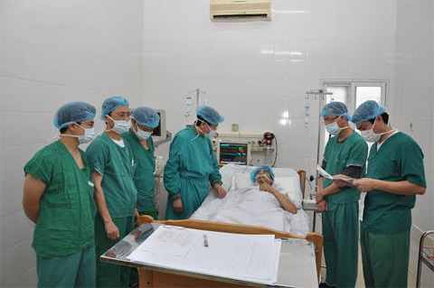 | Các bác sĩ Bệnh viện 103 theo dõi, chăm sóc bệnh nhân sau ghép tạng. Ảnh: Kim Sơn. |