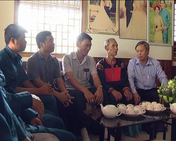 Hội đồng NVQS xã Ea Tu (TP Buôn Ma Thuột) thăm, hỏi, kết hợp tuyên truyền Luật NVQS đối với già làng, trưởng buôn trên địa bàn. Ảnh: VƯƠNG MẠNH