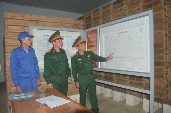 Cán bộ Kho K56 kiểm tra sơ đồ bố trí, sắp xếp nhà kho.