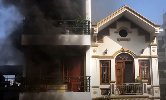 Theo một số người dân tại hiện trường vụ cháy, khi phát hiện ra cháy, khói bốc cao từ trong ngôi nhà rồi tràn qua các cửa sổ và cửa chính của các tầng. Nhìn lên tầng 4 thấy hai bà cháu đứng ở ngoài lan can giơ tay kêu cứu. Ngay lúc đó, cán bộ, chiến sĩ Cục Điều tra Hình sự, Bộ Quốc phòng cầm bình chữa cháy cá nhân có mặt tại hiện trường tham gia dập lửa và cứu người. Do lửa cháy từ bên trong ngôi nhà nên không thể vào trong để lên tầng 4 cứu được hai bà cháu. 4 cán bộ chiến sĩ liền giật cửa nhà liền kề trèo lên tầng 4 tiếp cận được nơi hai bà cháu đứng và đưa họ xuống an toàn.