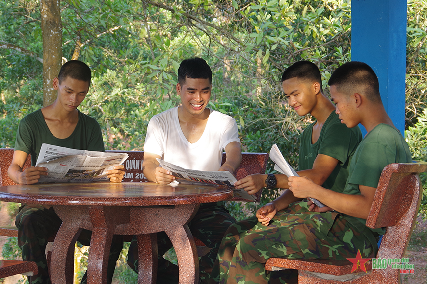 | Cán bộ, chiến sĩ nghỉ ngơi thư thái tại các khu khuôn viên sau những giờ huấn luyện vất vả. |