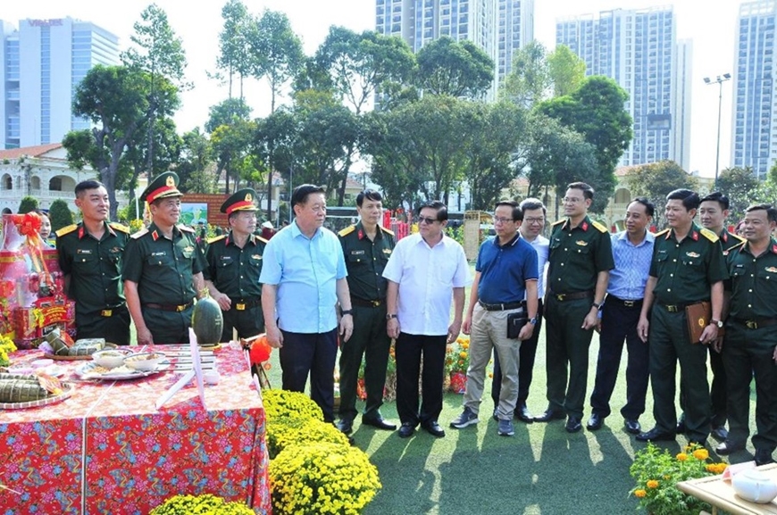 | Lãnh đạo Ban Tuyên giáo Trung ương (nay là Ban Tuyên giáo và Dân vận Trung ương) và các cơ quan thông tấn, báo chí tham quan, trải nghiệm Xuân chiến sĩ 2025 tại Bộ tư lệnh TP Hồ Chí Minh. Ảnh: HỮU TÂN |