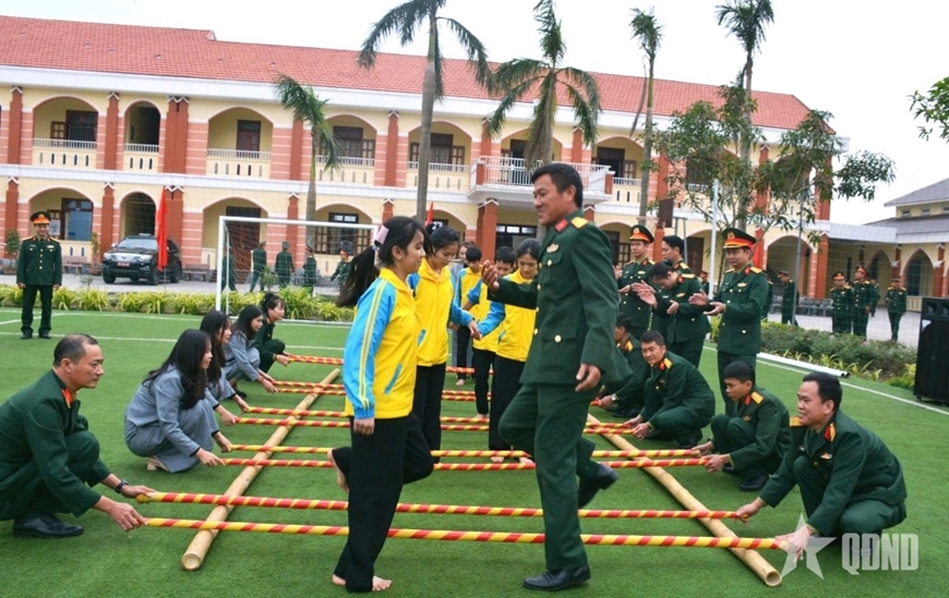 | Các em học sinh nhảy sạp, giao lưu văn nghệ cùng cán bộ, chiến sĩ LLVT Quân khu 4. |