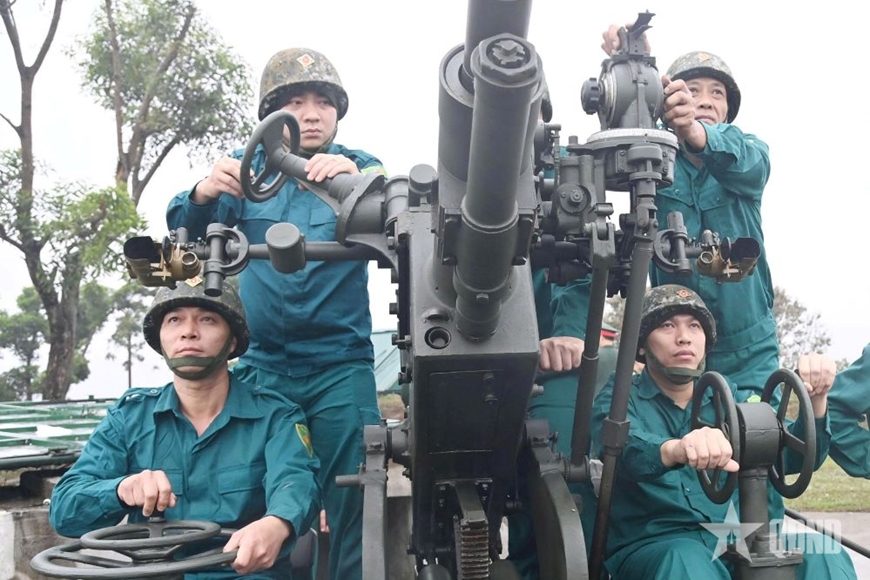 Đại đội Pháo phòng không 37mm Đặng Bá Hát, Công ty Tuyển than Hòn Gai-Vinacomin huấn luyện phương án chiến đấu. Ảnh: VĂN ĐẢM |
