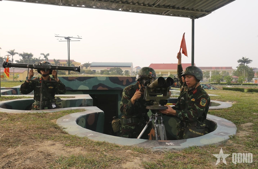 Chiến sĩ Đại đội 8, Tiểu đoàn 3, Lữ đoàn 214 sử dụng khí tài quan sát, chỉ thị mục tiêu. Ảnh: TRƯỜNG NGUYỄN |