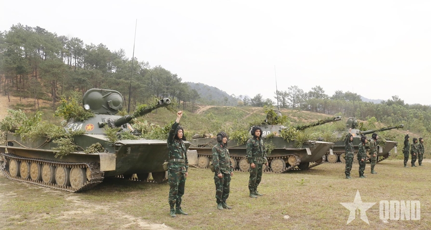Kíp chiến đấu Lữ đoàn Tăng thiết giáp 405 huấn luyện chiến thuật. Ảnh: VĂN TRƯỜNG |