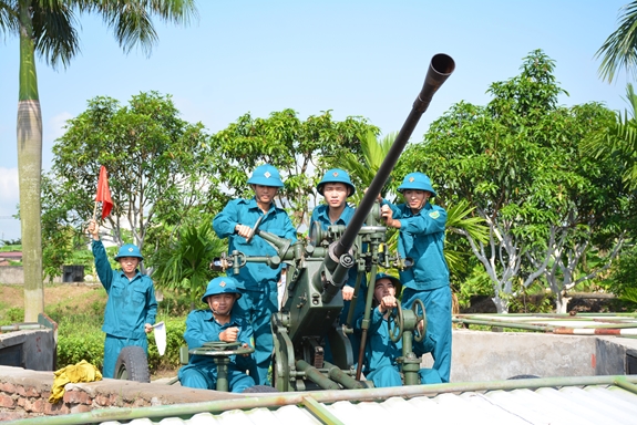 Dân quân Đại đội Pháo phòng không 37mm TP Hải Dương, tỉnh Hải Dương luyện tập sẵn sàng chiến đấu. Ảnh: KHÁNH CHI |