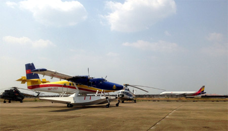 | Máy bay DHC-6, số hiệu VNT-777 chuẩn bị cất cánh làm nhiệm vụ tìm kiếm. Ảnh: Hùng Minh. |