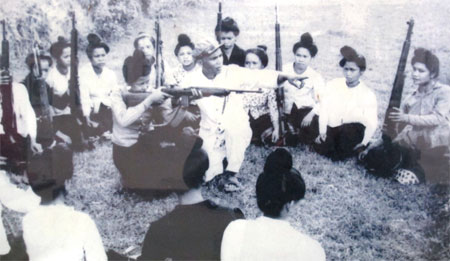 Lực lượng dân quân, du kích Lào tích cực huấn luyện quân sự tại các khu căn cứ giải phóng. Ảnh chụp tại Bảo tàng QĐND Lào
